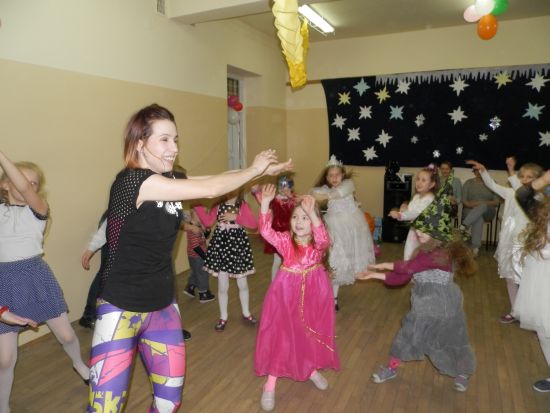 Karnawałowe tańce i zabawy prowadziła animatorka pani.E.Hebda.